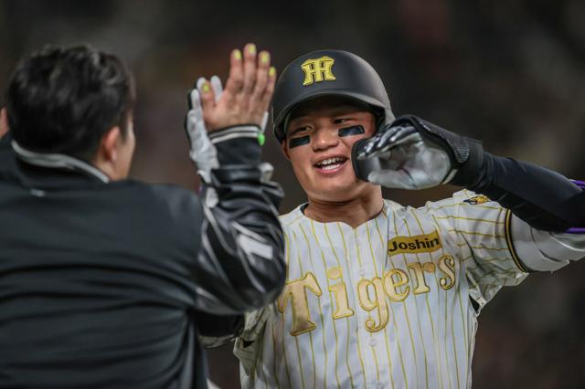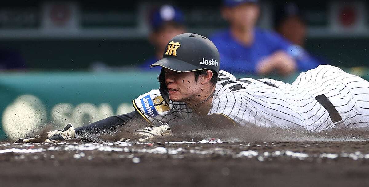 阪神・中野拓夢、森下翔太の二塁打で2度生還!10戦連続安打達成!